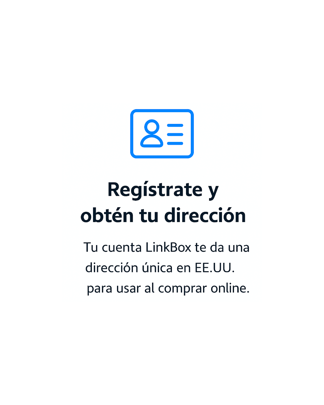 Una vez te registras, recibirás una dirección personalizada con tu ID (ej. LBX1045). Esa dirección debes usar en tus compras.